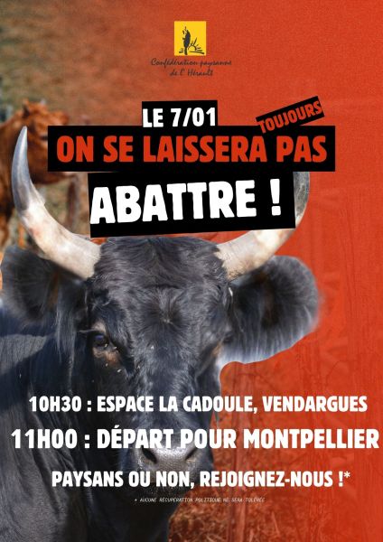 Venez nous rejoindre aux côté de la confédération paysanne Gard et celle des Bouches du Rhône pour dire NON à l'abattage total et NON au Mercosur* !